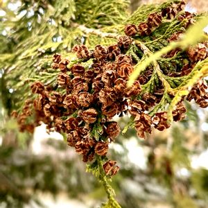 公園にある大きな木に沢山の実がなっています‼️ AIはヒノキかサワラと教えてくれましたが、葉っぱにHのようなものが見えないのでヒノキにしました。 最近(25年6月)買った樹木図鑑を見ていたらサワラもヒノキも分布は本州まで。 葉っぱの尖りかたからサワラに変更しました‼️