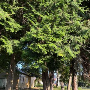 サワラの木 1️⃣足元までドレスをまとったような大きな木✨️ 調べたら「サワラ」と出ました🌿 2️⃣根っこが迫力あり、3本の幹に分かれています 3️⃣見上げたら木が3本立っているようにみえます 4️⃣実がたくさんついていました 🏷️木曜日は木に参加します🌳
