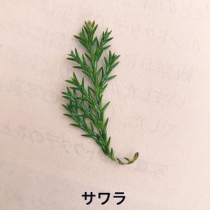公園で落ちていたサワラの小枝 t@buchiさんの投稿でヒノキとの比較教えてもらいました。 ・サワラの果実→直径約7㎜の球形、黄褐色に熟す。 ヒノキの果実→直径12mm ・実が無ければ葉の裏側の模様(気孔線)を見ればわかる! サワラはX字型 ヒノキはY字型 (写真の黒丸部分) 木材は柔らかいためヒノキのように柱などとしてはあまり用いられない。 水湿に強く、ヒノキやアスナロのような臭いがないので、飯櫃や柄杓、桶などによく用いられる。 殺菌作用があるため、松茸など食品の下の敷物としても使われる。 ※t@buchiさん、タイミング良く偶然に落ちていた小枝見つけました😄 早速裏側見ましたよ👀 ありがとうございました♡︎ʾʾ