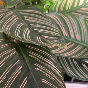 💕Calathea Ornata 💕 ( カラテア ) Goeppertia sanderiana クズウコン科 カラテア属 原産地 熱帯アメリカ 花言葉🌸 強い思い 温かい心 飛躍 8日は葉っぱの発表会 Life is beautiful 花言葉に心をのせて