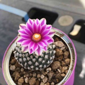 朝一の感動‼️ ふと見ると ツルビニカルプス バラ丸が咲いていました。 この瞬間がたまらない🎵 小さいのに、このパワー サボテンの底力を感じます どのくらい咲いてくれるのかなぁ~ 少しでも長く‼️ お願いします🙏 綺麗だなぁ~🎵