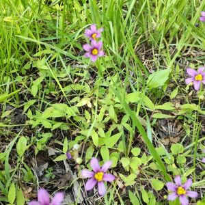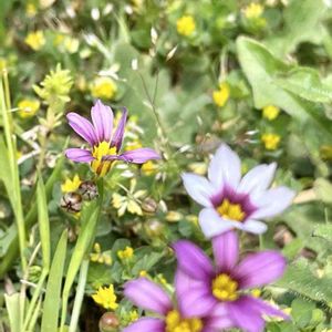 ちっちゃい「ニワゼキショウ」 いっぱい咲いてます🌼 ピンク色のも白いのも「ニワゼキショウ」 背丈のちょっと高いのも、こんなに地面すれすれに咲いてるのも「ニワゼキショウ」 〇ルリニワゼキショウ(青い花) 〇オオニワゼキショウ(背は高いが花は小さい) 三種類に分類されているらしいが、青いのは見たことがないわ(^.^;