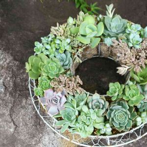 【今朝のリース】 陽射しの強い朝♪ 今日も日焼け対策して、 楽しい多肉事(*´-`)