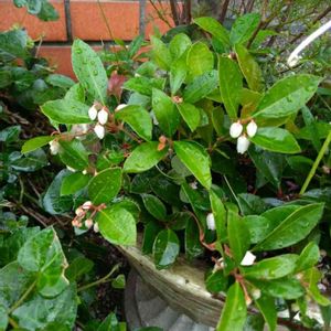 チエッカーベリーの花が目立たない様子で咲いています。 へえ~、この季節にさくのね❗