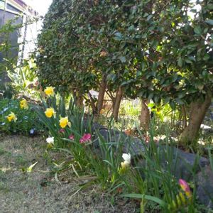 咲き始めたフリージア。 黄スイセンと、カラフルです。