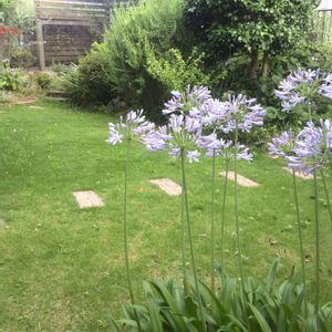アガパンサスが咲いて、注目があつまる場所になったけれどなにか寂しいので鉢をおいてみました~♪ 薄紫の鉢なので、アガパンサスおよく合う。 あたまが固いので、手持ちの鉢をどこに置くか、発想の転換が苦手です。
