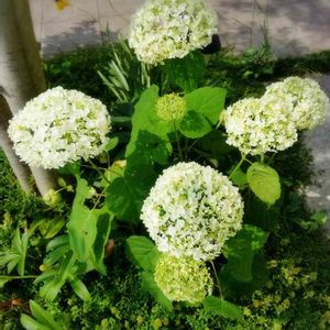 我が家のアナベルさんです まるまると 今年も咲きまして 風にゆさゆさ〰 玄関アプローチ シンボルツリーの下です ブルーのあじさいも 欲しくなりました☺