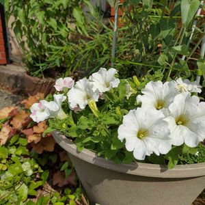 ペチュニアが咲き始めました。😍 キレイなホワイト。