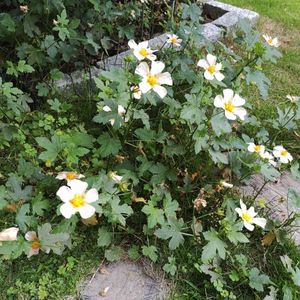 ダリアの花が咲きました。 つわぶきの勢力が迫ってきて、影になりがちなので、つわぶきの葉をせっせとちぎって日当たりを確保してます。😣 ダリアへと、せっせと肥料をあげているけどつわぶきに吸収されちゃって、、、トホホ なかなか思ったようにはなりません🌼