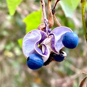 今日2枚目は遂に弾けた 白い実のノササゲ🔵⚪🔵 マメ科ノササゲ属 🫛 ①中の実はミッドナイトブルー🔵 ②鞘は枯れ葉のアート🍂 ③こんな感じで野山に🌿🔵🌿 ④こんな白い鞘が弾けた模様 ⑤今朝咲いたコスミレ2番花💜 もう可愛いくてニヤニヤ😍 🏷️美しく青きドヨウ 🏷️青い花で忘年会2024 🏷️青い実マニア ①②③昨日の生田緑地で🏞️ ④高尾山で🏕️2024.11.13 ⑤今朝のベランダで🌿💜🌿