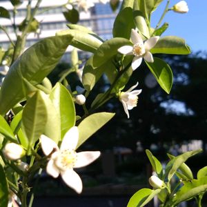 2025/5/8都内で撮影。柑橘系の香りがします。何の木かわかりますでしょうか? 追記:回答してくださった方々、いいねをくださった方々ありがとうございました。近くの木に、🍊のイラストの名札が付いており、緑のベビーちゃんを見たので みかん認定します。 ありがとうございました。