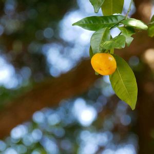 宮崎護国神社の境内の背の高い木に、ちっこいミカンが生っている。 金柑(キンカン)のようで金柑じゃないっぽい。。色が明るい黄色なの。 なんだろうー? もしかして、コレが、橘(タチバナ)なのかしら?? 直径5cmぐらいの実です。 たくさん生っていましたが、どれも細い枝の先の方に1個という間隔で実が付いていました。