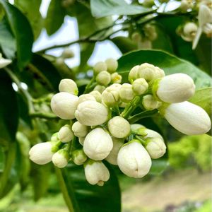 おはようございます *☂*̣̩⋆̩ 甘夏? 八朔? 柑橘系の実のなる木は確かなんですが、種類が不明です〜😩 白い蕾が、ぷっくりかわいいんです(*¨)~♥ 🏷金曜日の蕾たち 参加させていただきます🤍