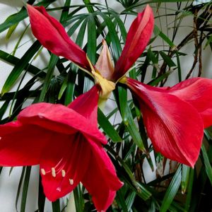 アマリリス レッドライオンと アマリリス リローナ リローナは凄く大きく咲きました😄💕 花数が少ないと花自体か大きくなるみたいですね😆✨✨