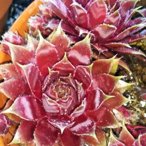 棚から下ろして 驚いた😻⤴️⤴️センペルビウム・レッドライオンさん🦁 一頭だけ 枯れてましたが 親御株さんと子株ちゃんは このお色でした💕 休眠前の ウォーターマークも残ってました😺