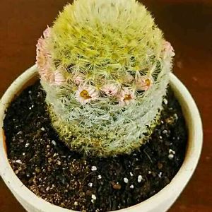 花サボテン 素焼き鉢 アイボリー色に塗りました