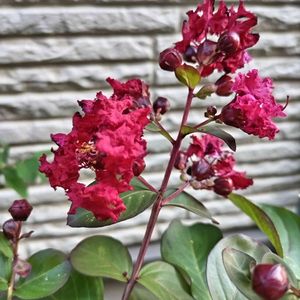 鉢なので少し遅かったけど☺️ 深紅で少しシックな色❣️百日紅ダイナマイト🌿