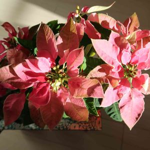 🥀 いらっしゃい 🥀 おはようございます😊 昨日、見切り品 100円でお迎えしたポインセチア ピンクとグリーンがきれい 朝の光を浴びて嬉しそうです 今日が仕事納めの方が多いでしょうか? 笑顔の1日を❣️