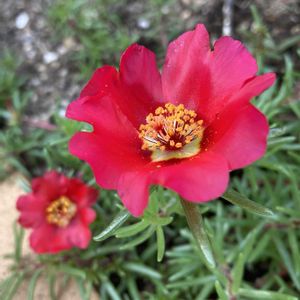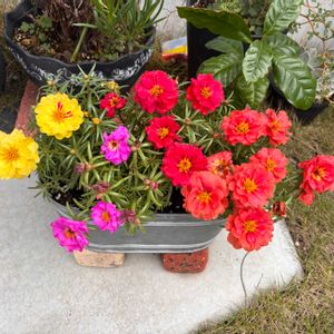 松葉牡丹 一輪も咲いていない苗がたくさん並んでいた中、2つ購入。 黄色い花が咲いた✨ もう一つは赤い花っぽい☺️ 同じ色かと思っていたので嬉しい🙌