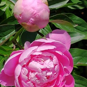お待たせしました〜 ようやく パ~ン! と、弾けました(音聞いたわけでは~) 🌺シャクヤク ボタン科ボタン属 🌺花言葉 恥じらい 慎ましさ ツヤっツヤの葉っぱに濃いピンクの花🌺🌿 可愛いですね💓〜我が家1番の淑女です