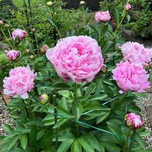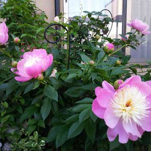 こちらはお隣のシャクヤクです。 今が満開‼️ お隣のおばあちゃんは今は老人ホームに入ってあり、たまに息子さん夫婦が畑の世話をしに来られます。 昨日、奥さんにピンクの「シャクヤク、もうすぐ咲きますね〜」と言うと、「咲いたら勝ってに貰ってください」と。 今朝見たら満開だけど、黙ってもらえず、写真だけ撮らせてもらいました。 あまりにも綺麗なのでGSにアップしました🌸😊🎶 いくつか品種があって、ピンクばかりです💕😊 隣との境界はブロック1段だけで娘が幼稚園の時は良く1段のブロックを超えて、お隣のおばあちゃんちに遊びに行ってました。 その娘も今年から社会人です😊