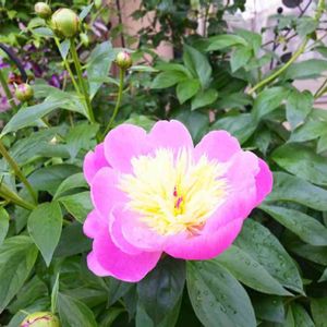 芍薬(ピンク)お花は1つ🌸❓ジキタリスの影になって伸びてきた枝で心配しましたが、元気に成長しています。 よかった‼️