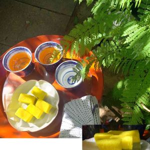 【お茶と花生活 水曜日】 金木犀の強い香りの中 葉っぱ好きにはたまらない 繊細な葉のジャカランダの下で 今回は白湯&ほうじ茶と お菓子は豊年(上はカルカン下はウイロウ) を用意しました 🌿よろしかったら ゆっくりお召し上がりください🌿 🔔お知らせ🔔 10月12日に🏷️秋の茶会を開催 皆様はどんなティータイムを 過ごしていますか?または お客様におもてなし したいですか? 秋の日の飲み物と植物をテーマに 一枚の写真を募集してます💕 《5日🌧️26℃61%》
