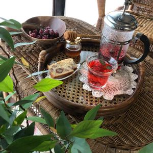 ローゼルの実 ユーカリ(レモンユーカリ) 自分で苗から育てたからでしょうか なんとも言えないルビーレッドの素敵なティーです レモン果汁🍋の様な酸味は強くなく飲み易い 甘さの欲しい方🐝🍯をどうぞ 神に捧げる花と言われ不老長寿の飲み物ですと書いてありました 健康や美容にとってもいいらしいので 来年はもっと作ってみたい 魅惑のローゼルティー🫖 ◀️ ぽろたんで作った渋皮煮をパウンドケーキにしてみました 甘くないティーかしらと思って小さめのケーキ型で焼いたもの どうでしょうか お口に合うといいんですけど と言っても今日は一人で幸せな時間を過ごそうかなと思ってる わ・た・し 花街urawaさんの「秋の茶会」に参加させて 頂きたくpic up