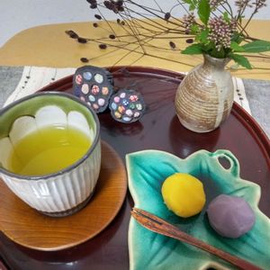 花街urawaさんの お誘いで秋の茶会に初参加させて頂きます😊 抹茶茶碗が桜柄しか無かったので 湯呑みにしました🍵 さつま芋のお団子の彩りも秋らしい✨ 蓮の実の飾り物 思い出して 飾って見ました😊 今日は 曇ってますが 秋らしい気温で 熱いお茶が美味しいです🎵