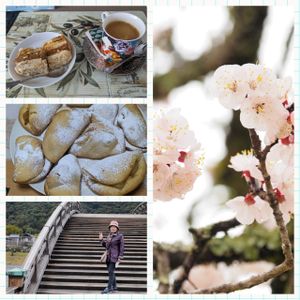 今日は〜☁☀ 広島の旅も2日目です 早朝から山口県錦帯橋に〜 🚙💨息子夫婦と🎶🎶 錦帯橋を渡りロープウェーで山頂に!! 岩国城観光…桜はまだだが八重🌸が咲きgood !! 山頂からは山歩き〜 その途中小さな椿の木に花が咲いていた✌️👀🎶 今日の万歩計は14500歩💪 楽しい楽しい観光でした