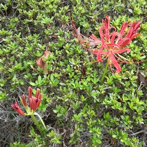植え込みのツツジの中から顔を出して咲いていたヒガンバナ❗️ この辺では珍しいので笑いながら📷️ 今日のお花なので投稿しました❣️