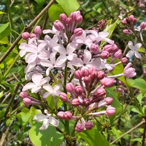 道路脇の茂みに1本だけ生えているライラックの木に花が咲きだしました❣️ 3月の末には1枝にだけ花がついていましたが、1週間後にはあちこちの枝に咲いています❗️ 残念なことに柵があって近寄れないので手を伸ばして撮りました😅