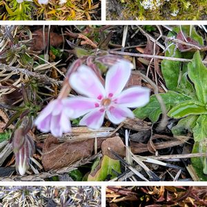 シバザクラ(芝桜)白、赤、ピンク ハナシノブ科フロックス属 皆一面に咲き揃うのは後1.5〜2ヶ月位先でしょうが、冬の寒さの中でも数輪が花を付けてます。 2025.3.10午前撮影