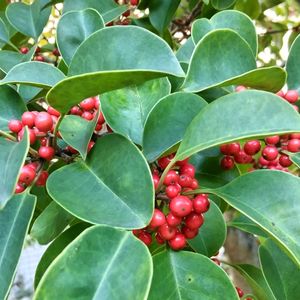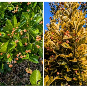 道路脇に植えられているクロガネモチの木。 ③④は1ヶ月前に撮ったものです。オレンジ色の実は綺麗な赤になっていました❣️