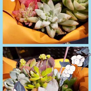 多肉の寄せ植え🌿🍀☘️ 上段 エケベリア、ダトレア アナカンブセロ 下段 エケベリア ニジタム バキフィツム・クーケリ 多肉初心者🤗🌿🍀🎶 花屋さんで、撮らせて貰いました。 まだ、買ってません。笑笑 間違いがありましたら、ごめんなさい🙇♀️🙏🤗 おはようございます😃🌤️ 今日も一日よろしくお願いします🤲🥺