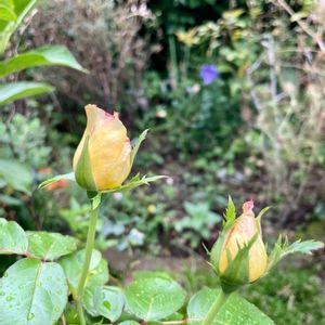 雨に濡れるバラ🌹 🏷金曜ローズショー 🏷金曜日の蕾たち 🏷毎日ローズショー 🏷妖精図鑑 🏷花咲く乙女たち♡ ユキサン ノヴァーリス ラブ&ピース ??? 新入りのリラ 今年は毛虫多いです😭