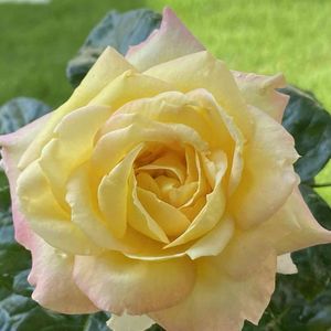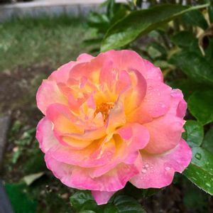 今日のラブアンドピース 周りの花弁が一層ピンクに🌹 あまりいい天気じゃないけど、明日満開かな💦