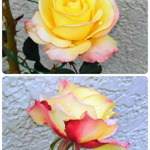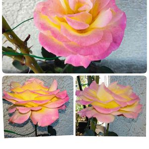 昨日の午前中からのラブ&ピース 上段左=昨日午前中真ん中=夕方 上段左=今日8:00頃 下段左=今日10:30頃 右=17時過ぎ 明日はもう少し濃いピンクになるはず。 色の変化も楽しめるバラです🌹 🏷金曜ローズショー