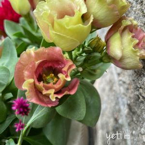昨日作った寄植え、その① テーマは『セレナーデ』 この寄植えを、仲良くしていただいている花友のユーリさんに捧げます🥰 トルコキキョウ・プッチーノ『ライム』やセロシアたちの優しい花色は、ユーリさんの穏やかで優しい人柄にぴったりだと思いました💕