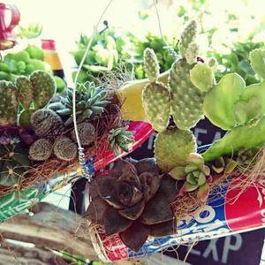 サボテンの寄せ植え🌵と スパム缶&ワインのキャップの 多肉さん植え🌱