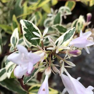 この花の名前教えてください🌸🌸 「斑入りアベリア」 「れいさん」に教えて頂きました。 花壇に這う様に咲いていましたが、斑入りの葉であり、小さくかわいい花です。