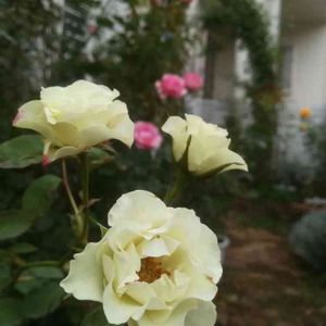 おはようございます。 10月も終わりですね。 秋バラもようやく華やかさを増してきています。 京成バラ園でセール品の新苗で買ってきた緑光が房咲きになっています。