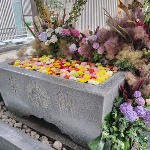 金蛇水神社 夏越えの大祓い 茅の輪 紫陽花などで彩られた手水場