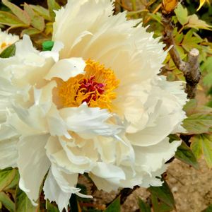 花弁の切れ込みが独特な牡丹、白い鳥の羽根のよう