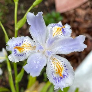 今日のお花 🤍💜シャガ🤍💜🌿 我が家も昨日から咲き始めました🤍💜 1⃣2⃣3⃣シャガ 🏷春爛漫の青い花2025 🏷美しく青きドヨウ 🏷0の付く日は雨粒の日