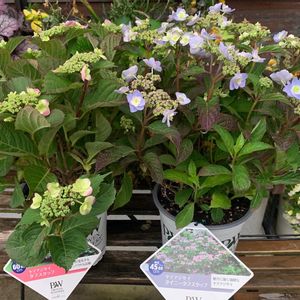 雨ばかり降っていて、なんだか紫陽花に心惹かれるこの頃でして。 時期的にには少し遅い?ので 四季咲き性のある<霧島の恵>をホムセンに 探しにいきました😁 小振りでも花芽の付いた苗がたくさんあったんですが、 その隣に一つだけ売れ残ってた紫陽花の苗がありまして。 山紫陽花 タフスタッフというようです😊 お値段も霧島の恵の2.5倍位したんですが、 一つだけ残ってるのがいじらしくて 連れて帰ってきちゃいました😅 紫陽花もちょっと勉強して、頑張って育てたいと思います😆💓