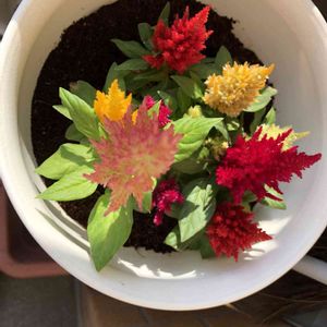 ケイトウ タネから育ててここまで大きくなりました。多分成長に対してポットが小さいので早く植え替えないとですが暑くて暑くて、、、💦💦動かないとなー💐