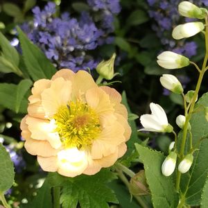 今日のお花 スミレ ・ニオイスミレ パープル八重咲き ・宿根黒葉スミレ(ビオラ) ラブラドリカ 画面左上の2輪と中央やや右の1輪の 薄紫色の花がニオイスミレ。 画面下半分がラブラドリカです。 10号の素焼きボール鉢に寄植えしてます。 ここには紫〜ブラックの花を集めていて 画面左下のシルバーリーフだけが 紅一点ならぬ黄一点の、PWガザニア ビースト シルバーフォックスです。 あえて入れたのではなく、植え場所に困り ここに間借りしてる感じです。😅 去年12月にお迎えした小さい苗なので まだ咲いてません。🥲 定住場所が見つかったらお引越しか? このままが案外いいのか?考え中です。🤔 🏷愛しの紫 🏷モダンな木曜日 🏷青い花マニア 参加させて下さい。🥰