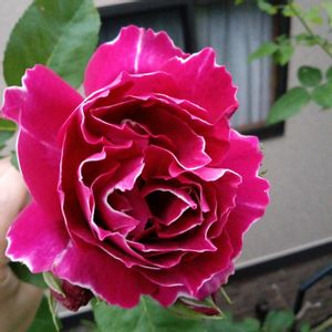 今朝は土砂降りの雨でお庭の撮影断念😅 皆さんが 真っ赤な火曜日 というタグで、素敵な赤色のお花をupされているのを見て、私も赤いバラを‥☺️ 遡って、つるバラ バロンジロードランの全盛期✨ 実家のフェンスに沿わせたら、なかなか全体像が撮りにくく、この程度です💦 白のふちどりと紫がかった深紅の組み合わせが妖艶で、本当に大人っぽいバラでした❤️