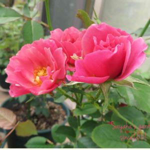 あおいさん(*^o^*)🌹 軒下で管理してます 新苗ですが可愛くて💕また咲かせてしまった💦 夏は咲かさない方が良いかな?😅